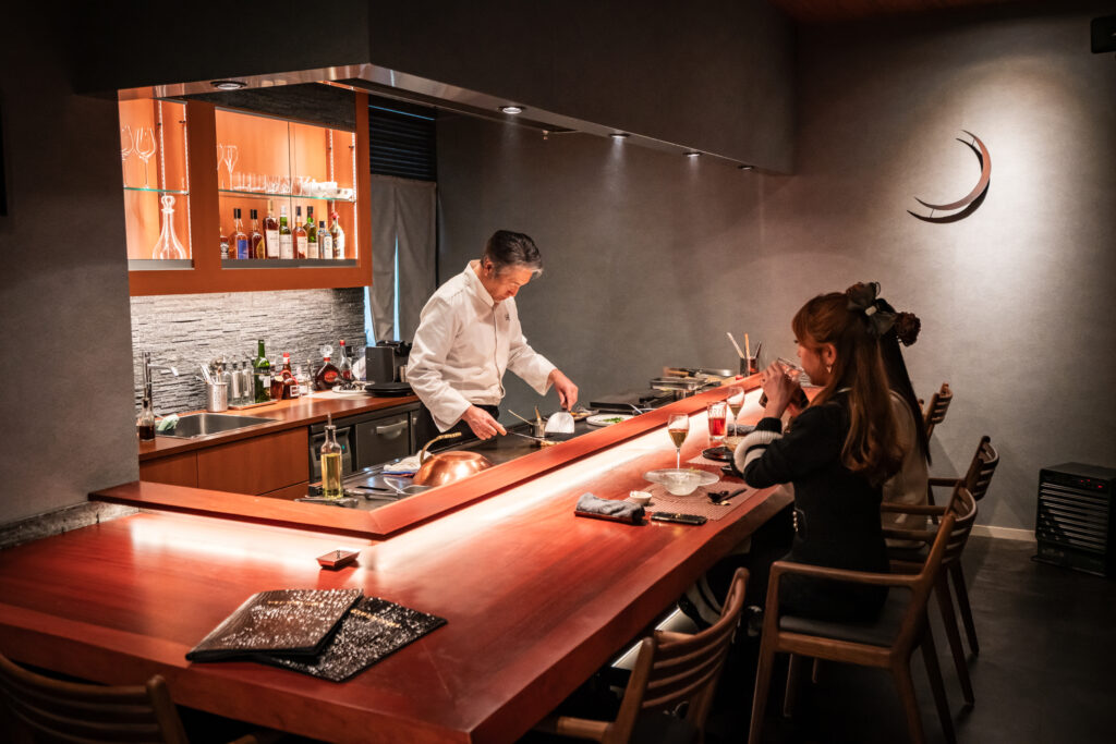 月詠の鉄板焼は、料理人ひとり、カウンター七席のみの完全予約制です。